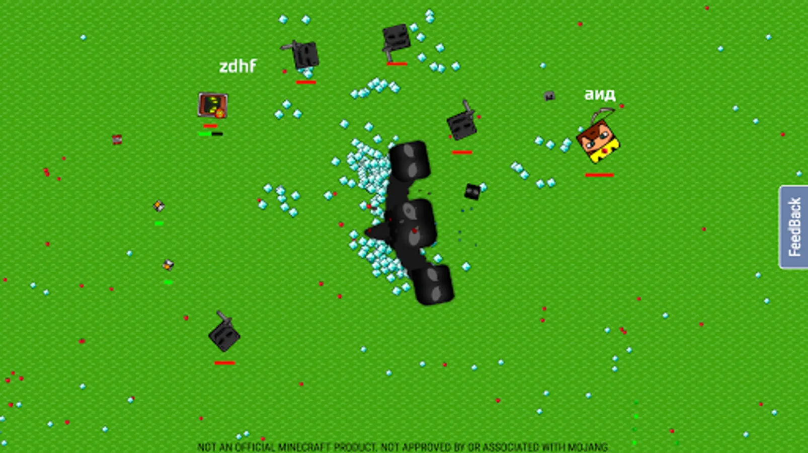 Another feature of CrazySteve.io is that you can undermine your own sword. You can throw 4 dynamite at a time. Only after the explosion of one of them you can throw a new one. On the map are scattered different helmets: wooden, iron, gold, diamond and cart, wear them or sit in the cart to be more protected!