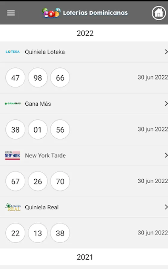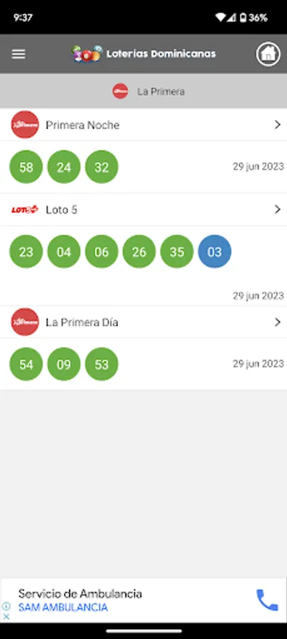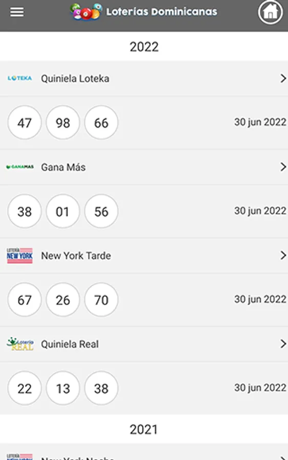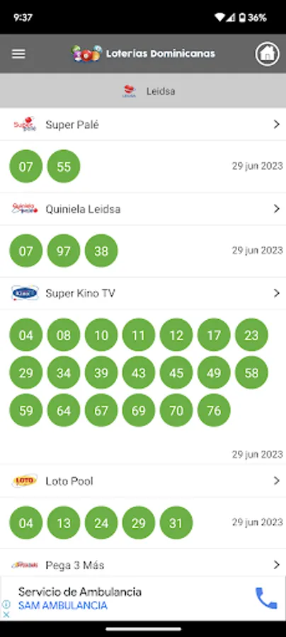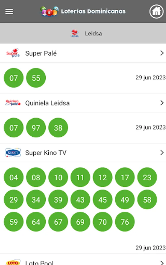 Instant results and statistics of all Dominican Lotteries that are played in the Dominican Republic. Leidsa, National Lottery, Real Lottery, Loteka, American (New York / Florida / Mega Millions / PowerBall), La Primera, La Suerte Dominicana, LoteDom and more.