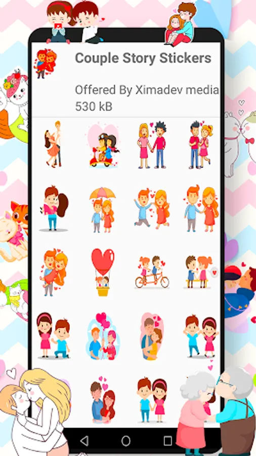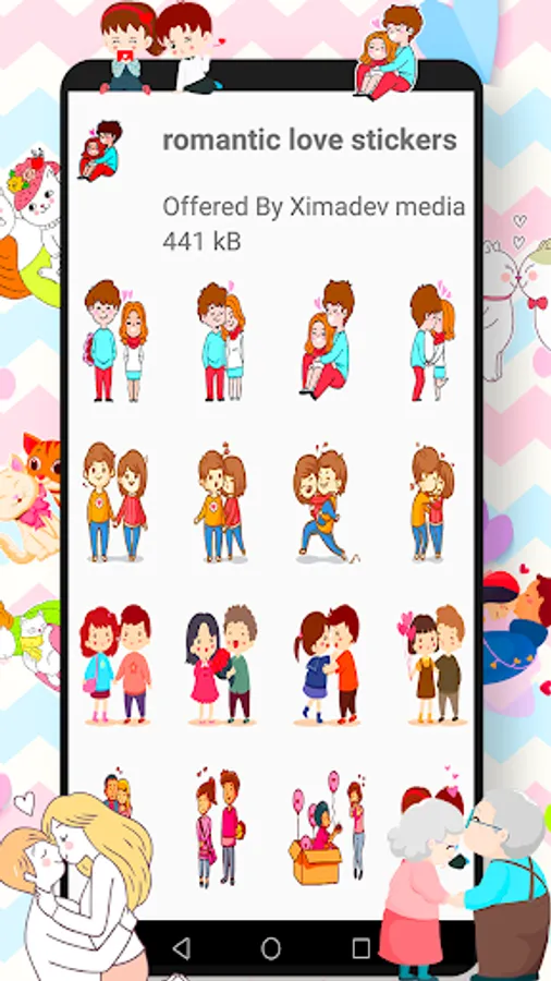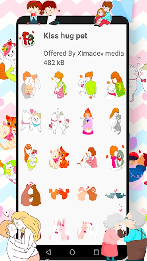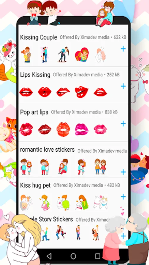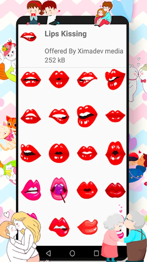 So you'll find out many Love Kiss sticker packs such as : WAStickerApps Kissing couple, WAStickerApps Lips Stickers, WAStickerApps Romantic love stickers, WAStickerApps hug and kiss Stickers, and many new love Kiss Stickers…