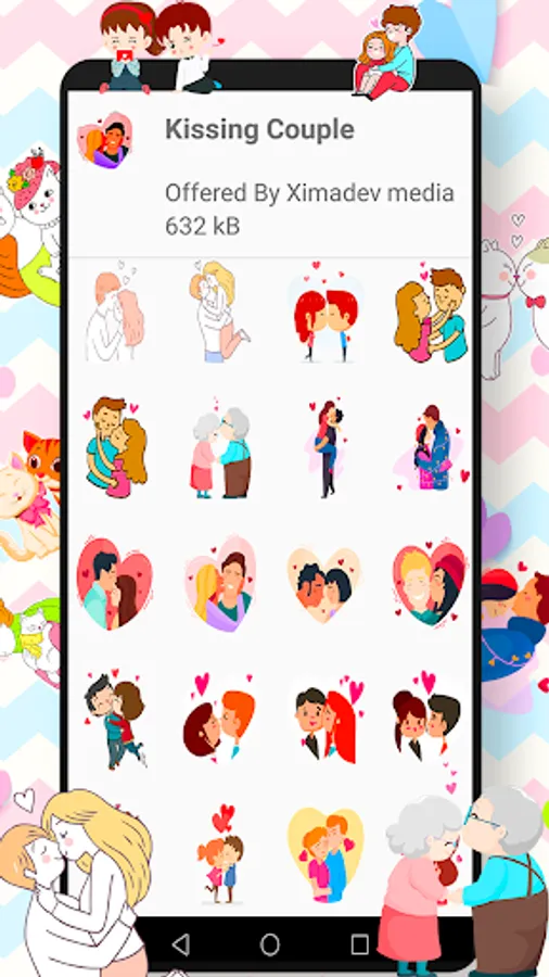Disclaimer : All visual content featured on wastickerapps kiss apps gotten from a website as a premium user (Check Out the link in our Privacy Policy), for that we have the ability to download licenses that will allow us to use all those resources without attribution. also we can use the graphics without crediting the author.