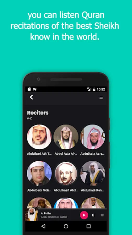 World famous reciters including Abdul Rahman Al-Sudais, Sheikh mishary Rashid Alafasy, Cheikh Saad al Ghamedi. and more reciters..