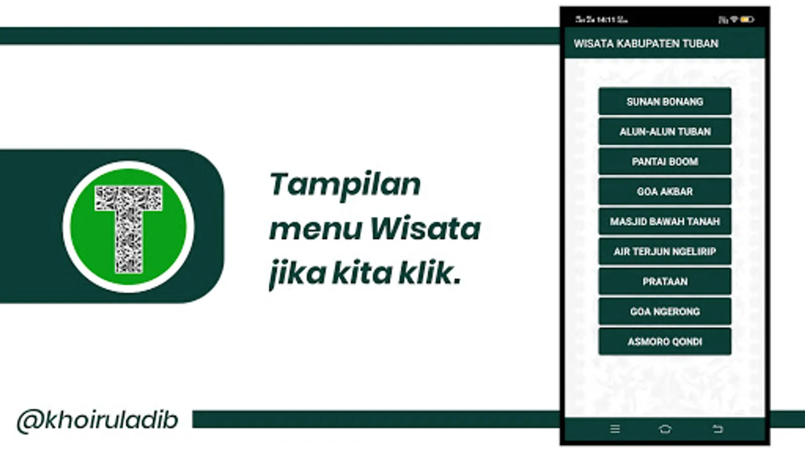 KitaTuban application is an innovation to provide information about Kab. Tuban starts from tourism, culinary, information, science, etc. so that it makes it easier for everyone to access by cellphone because this application is very flexible for everyone and can be installed by all people for free.
