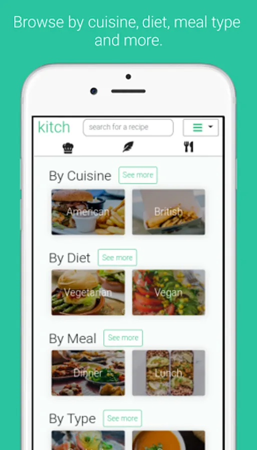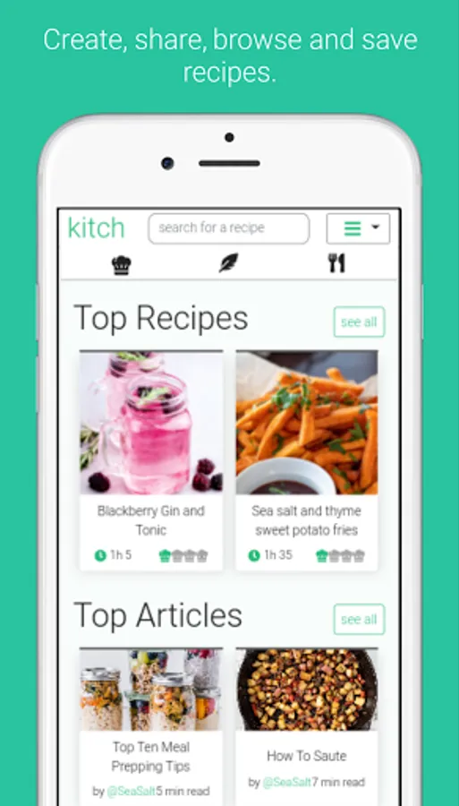 Kitch is a social cooking app that makes it easier to cook great food. Browse by tag, diet, ingredients, and find recipes that match what you already have in the pantry. Share your own recipes with others and get feedback from a global community of cooks.