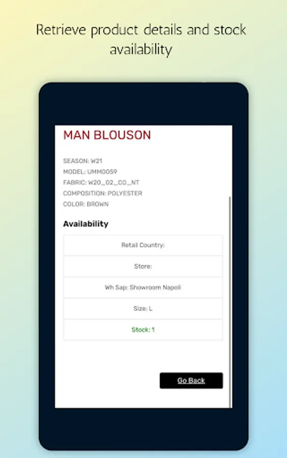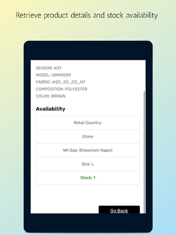 The app allows you to get the details of a Kiton product by scanning the QRcode.