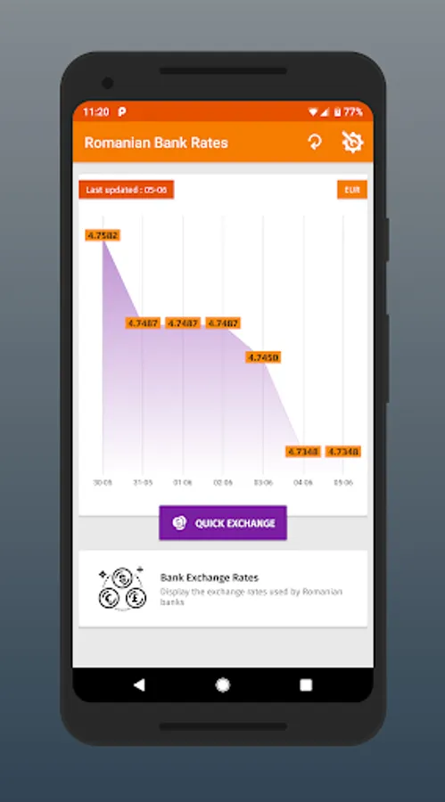 ✦ Quick Convert option : Simulate a RON-to-foreign (or vice-versa) currency exchange with the rates practiced by a bank of your choosing.