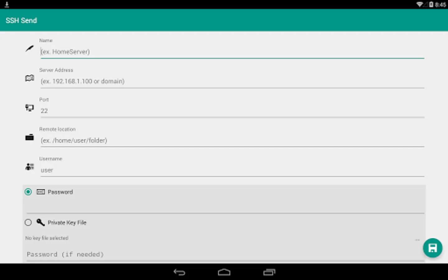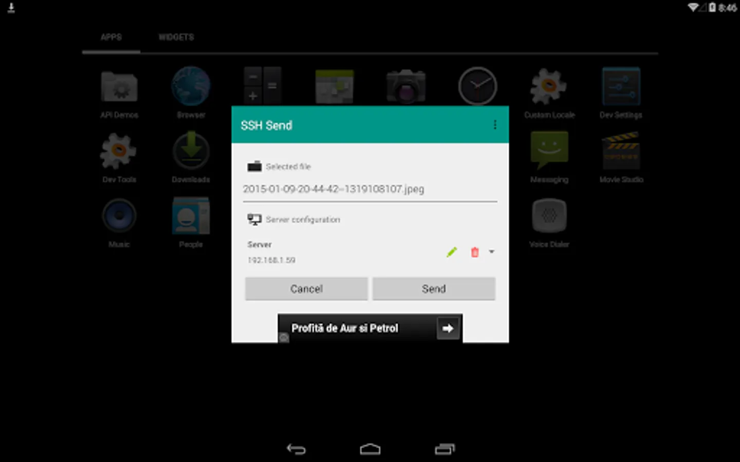 This is a simple application that allows you to send files via the SSH protocol to any server you want.