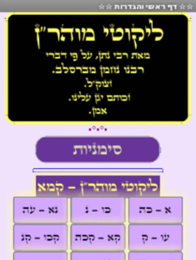 In the year 1905, our holy Rabbi told R. Natan to gather the practical aspects and advice included in the "Likutei Moharan" and present them in an abbreviated form.