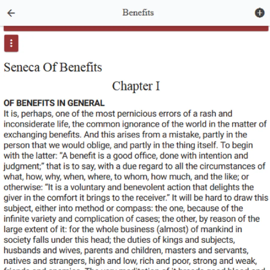 Seneca generally employs a pointed rhetorical style in his prose. His writings focus on traditional themes of Stoic philosophy. The universe is governed for the best by a rational providence, and this has to be reconciled with adversity. Seneca regards philosophy as a balm for the wounds of life. The destructive passions, especially anger and grief, must be uprooted, although sometimes he offers advice for moderating them according to reason. He discusses the relative merits of the contemplative life and the active life, and he considers it important to confront one's own mortality and be able to face death. One must be willing to practice poverty and use wealth properly, and he writes about favours, clemency, the importance of friendship, and the need to benefit others. Seneca practiced stoicism so we can safely call him stoic. Free eBook