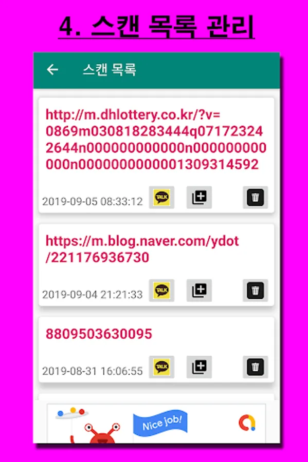 It can scan a QR code reader and barcode, and it has a function to manage the scanned list, so it is convenient to browse the website (URL) again.