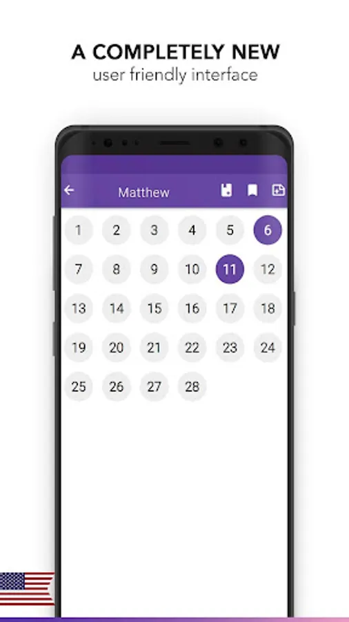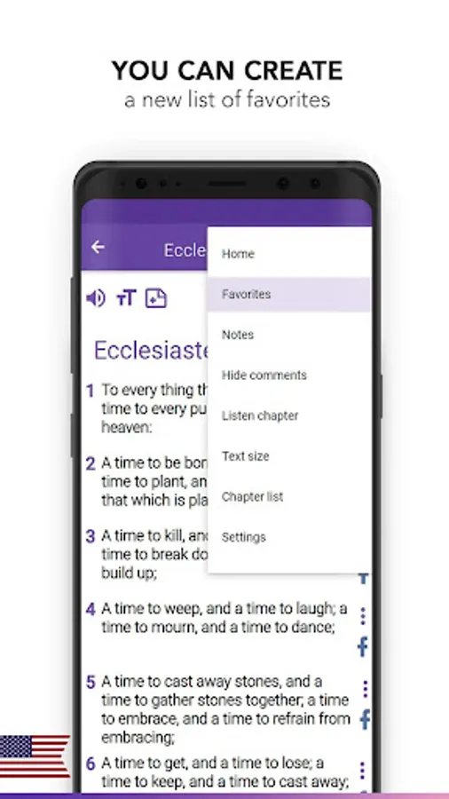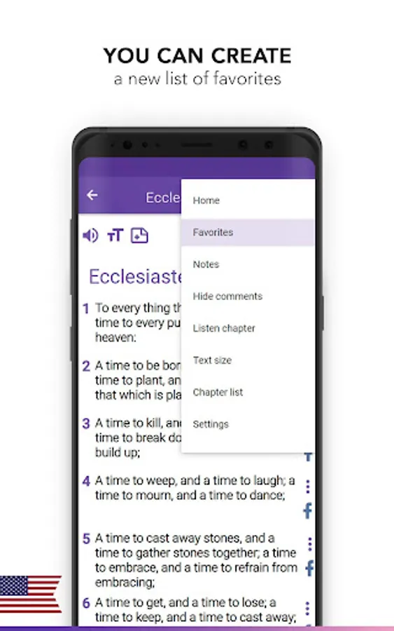 • The possibility of bookmarking and highlighting verses: many people feel the need to mark certain verses because they came to him or helped him at some point, or because he wants to share it with someone else. You have the possibility to select or mark the verses of your preference so that you can always find them without problems.
