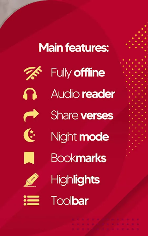 This app introduces new features including the ability to search verses using keywords, bookmark, and highlight verses, make a list of favorites, copy, paste and share verses, adjust font size and remember the last book read when you reopen the app.