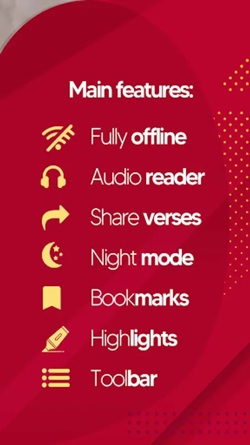 This app introduces new features including the ability to search verses using keywords, bookmark, and highlight verses, make a list of favorites, copy, paste and share verses, adjust font size and remember the last book read when you reopen the app.