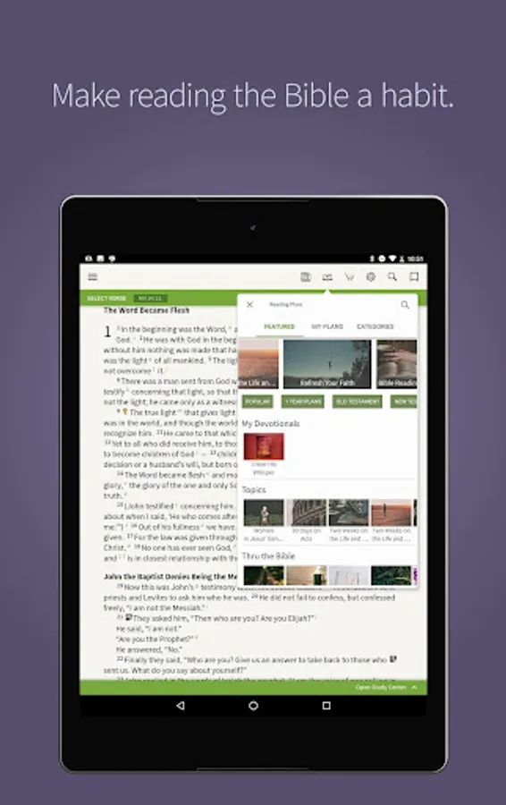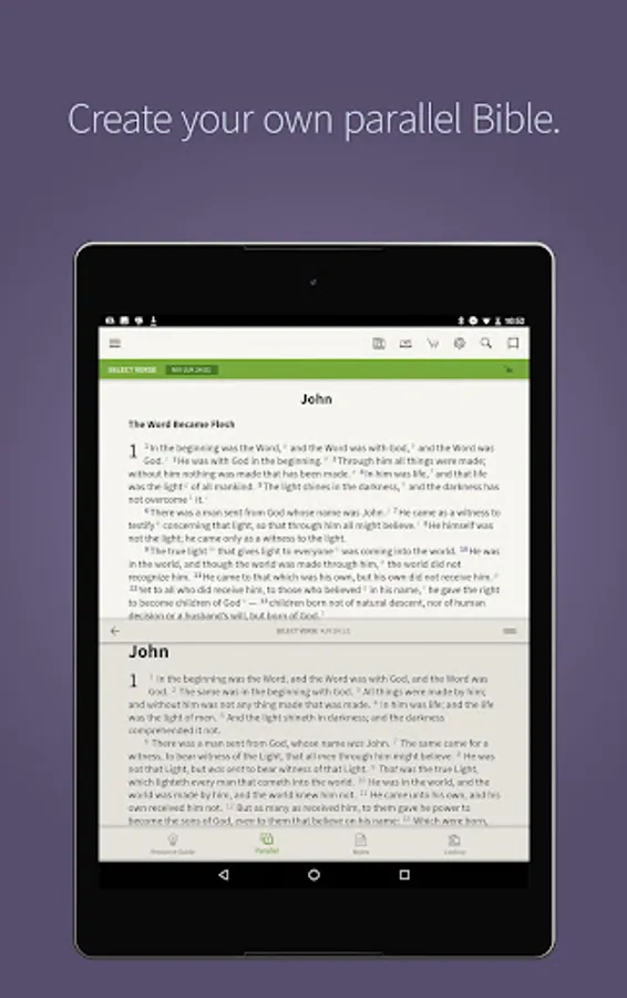 Studying the Bible is the easiest it has ever been. Use the Study Center and Resource Guide tab to access any of the resources available in our app and read them right alongside the Bible of your choice. It even does all the hard work of tracking with you, verse by verse.