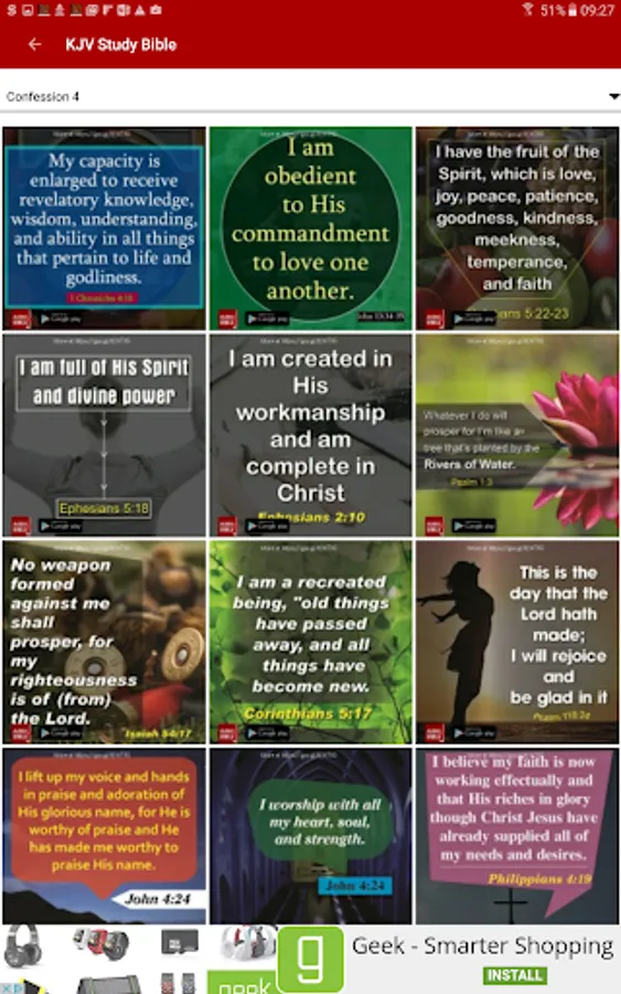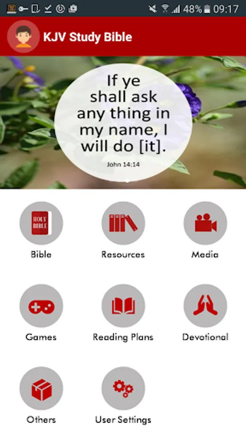 In free KJV Bible study you can share verses on image. You can select the image from your own gallery and use it to share with your friends and family. Your friends will be happy to see your image behind the verse which will tell them that you care.