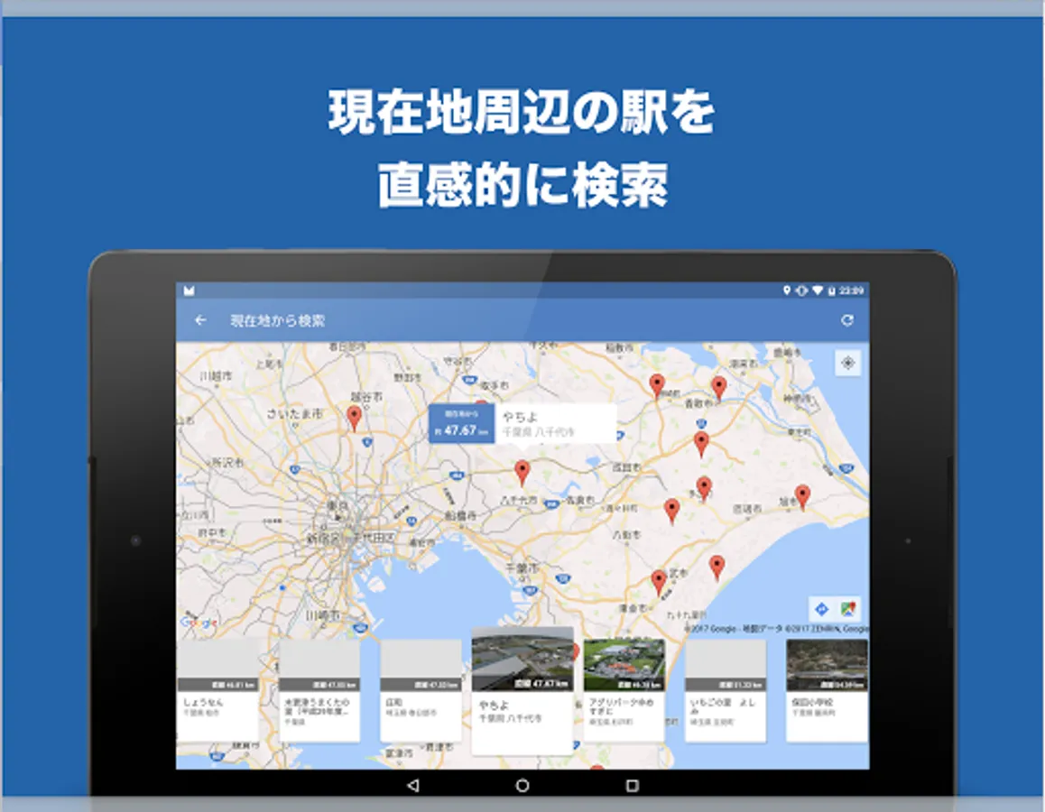 ◇ Display the "roadside stations" around your current location on the map in order of proximity.