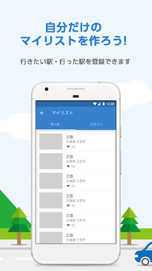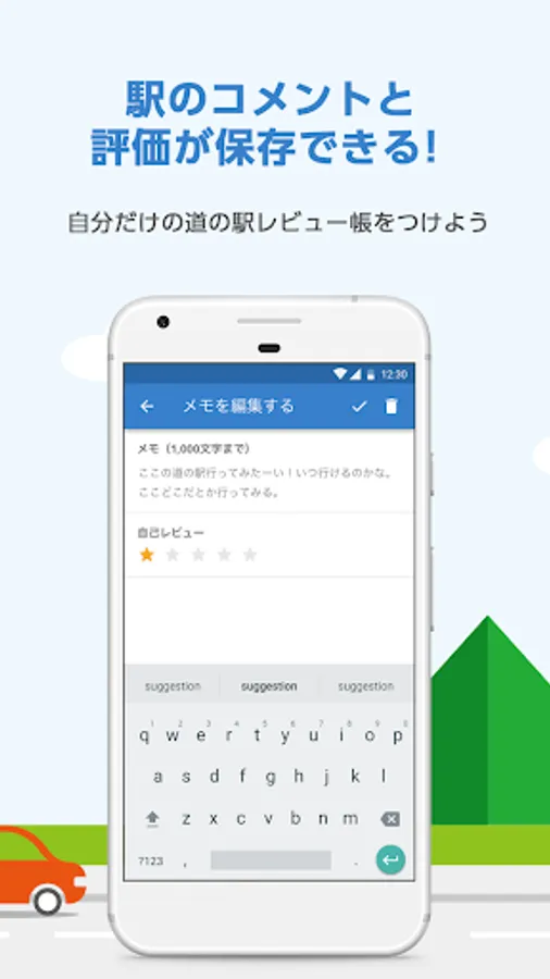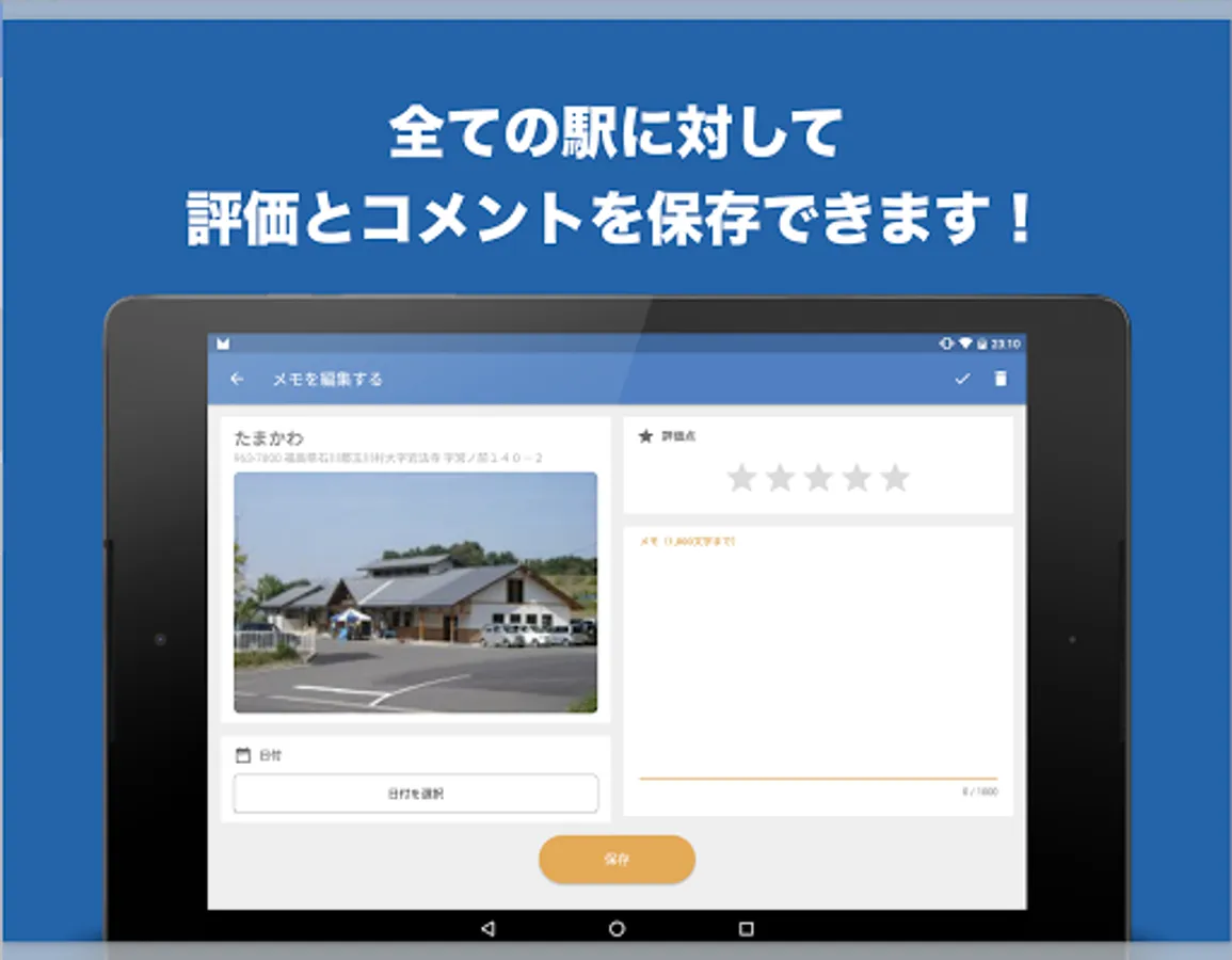 ◇ You can save "comments", "evaluation points", and "dates" for each "roadside station".