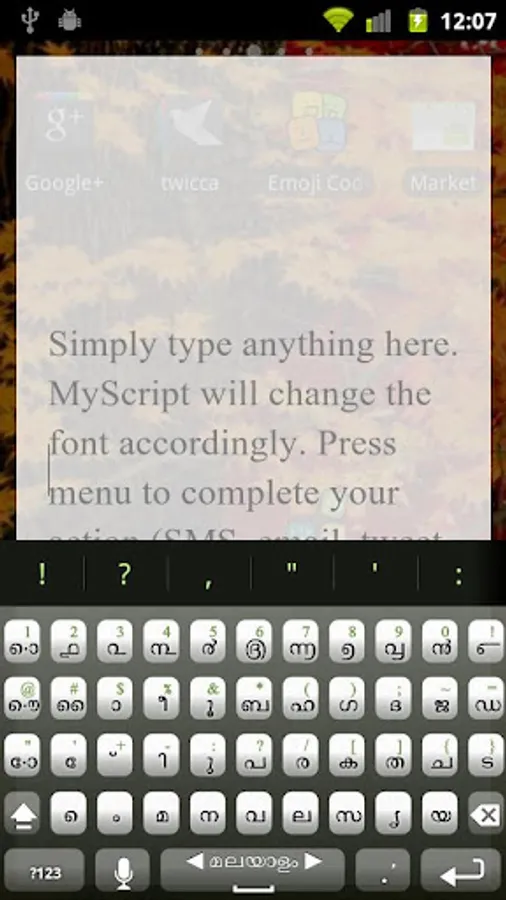 Once done editing, you can send the message via other apps such as SMS, GMail, Twitter, Facebook, Google Docs and so on. These apps may show boxes but don't worry, your recipient should able to see it on a desktop machine.