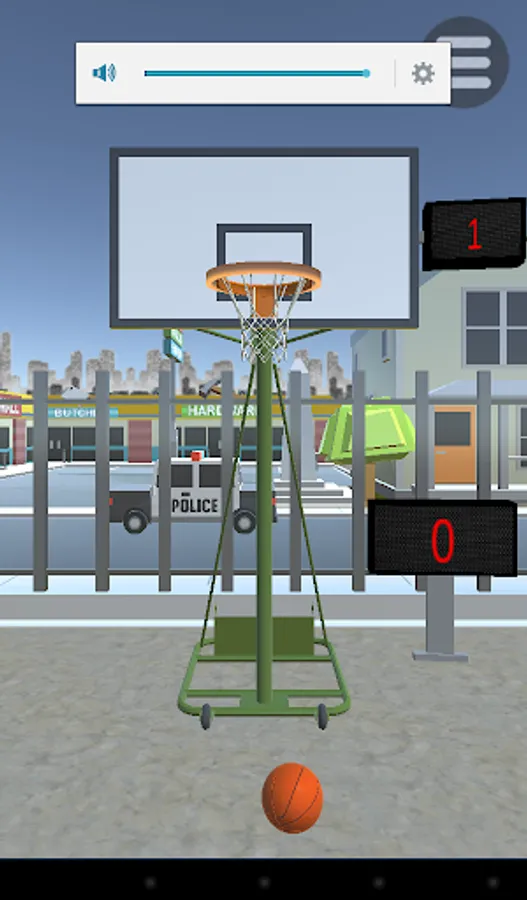 How to play the game: Swipe your finger across the screen(you don't need to touch the basketball). The longer the swipe the more powerful the ball will be shot. The wider the angle between the touch and release, the higher the rotation of the ball. Current points are recorded on the display below the basket, while your high score is next to the backboard, near the hoop.
