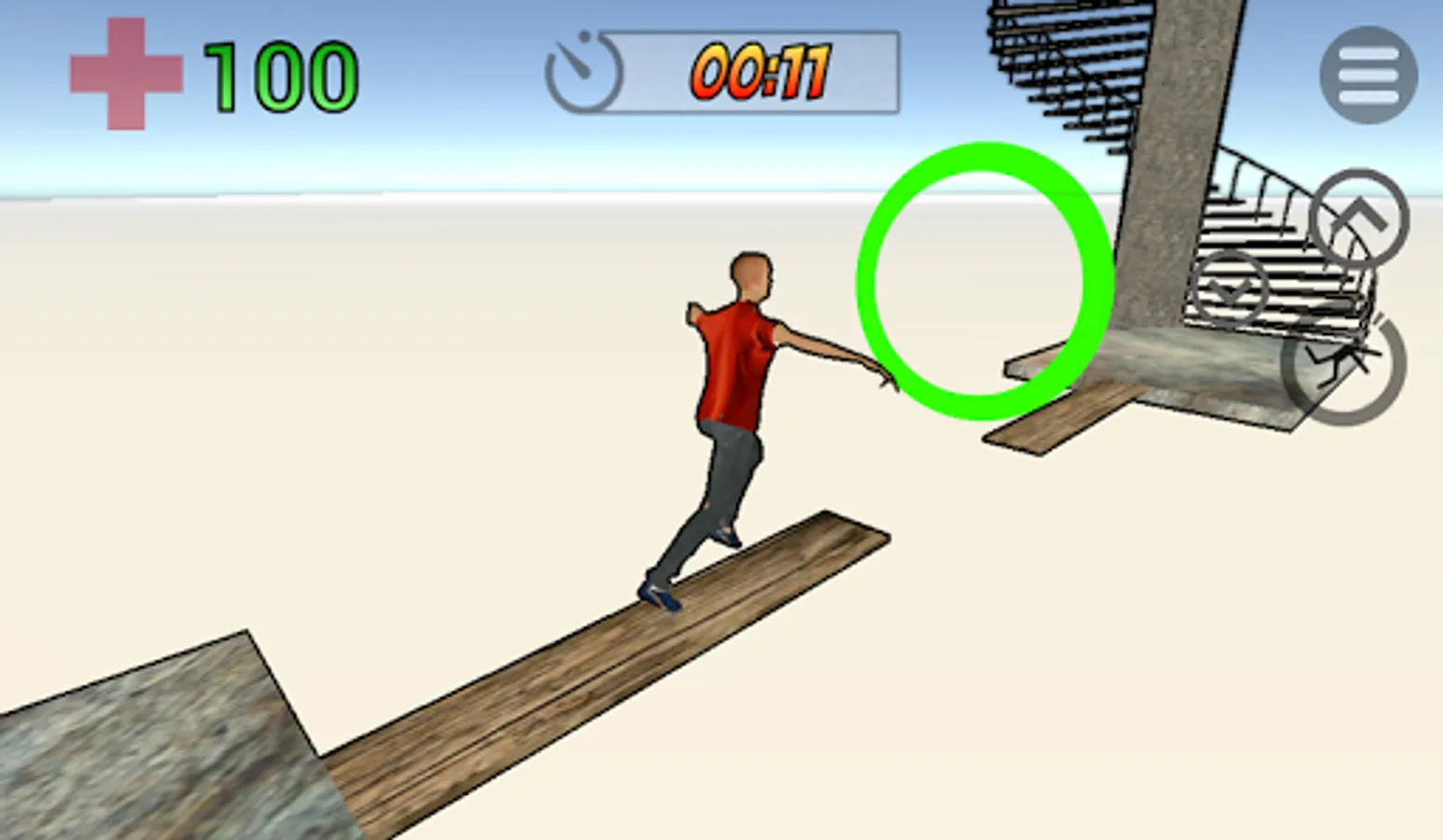 There are two joysticks on both side of the screen in the game. The left one controls your movement, while the right joystick controls your camera. On the right side there are another three buttons. The up arrow makes you jump, the down arrow makes you crouch and the stumble icon makes you fall or get up.