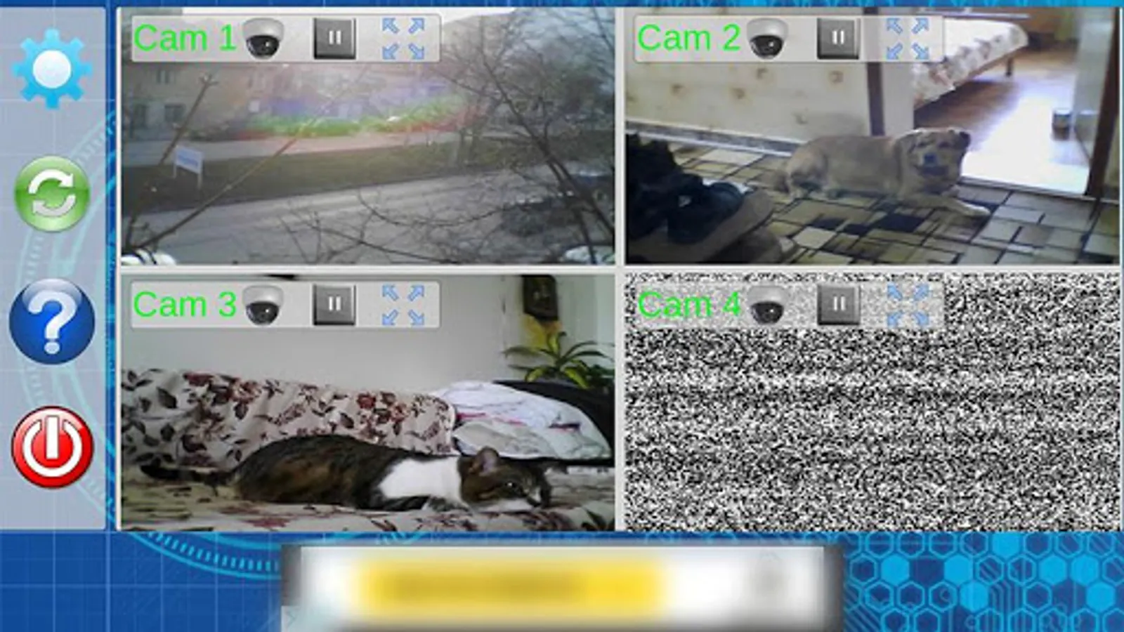 You can choose a one cam or four cameras layout, depending on your needs. Each of the 4 cameras can be expanded so that you can see it better.