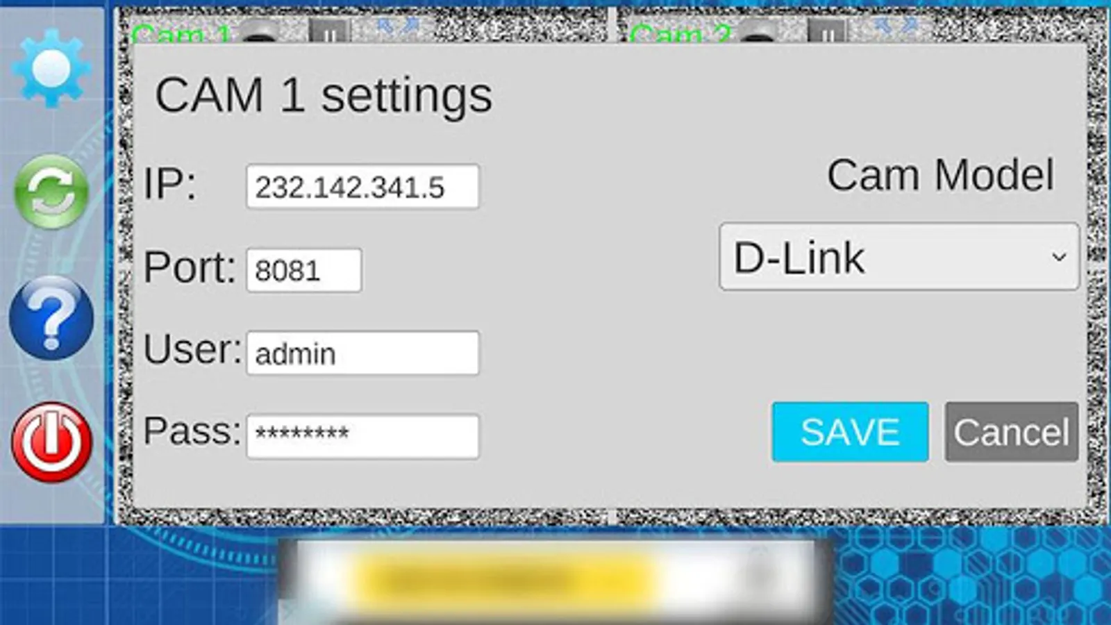 Cam Model: You can use one of the predefined camera makes selected or, if you select --Custom link-- a new field will appear where you have to type in only the link after your camera's IP and Port Number, for example if the link to the camera's image is http://(IP ADDRESS):(PORT NUMBER)/image.jpg, you only have to type in the "image.jpg" part, the same goes if the link to the camera's image is http://(IP ADDRESS):(PORT NUMBER)/imagep/picture.jpg, you only have to type in the "imagep/picture.jpg" part.