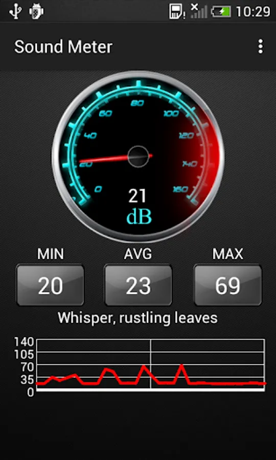 Noise meter and analyzer app (dB meter), that measures the sound volume in decibels in your surroundings. It also references, in text, the current dB sound level to a known loudness of some common noises. Want to measure how loud or noisy is around you? If your car or motorcycle is too loud? The noise pollution in your area? This is the sound meter application for you.
