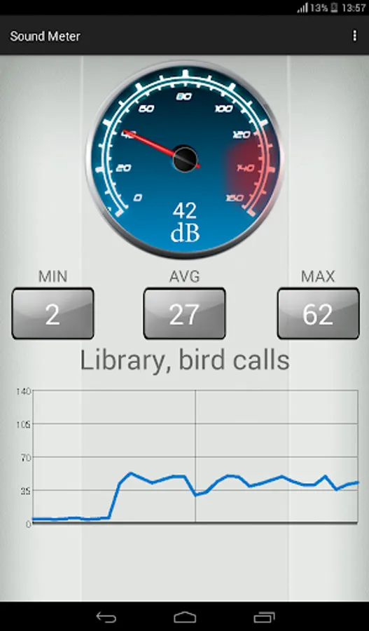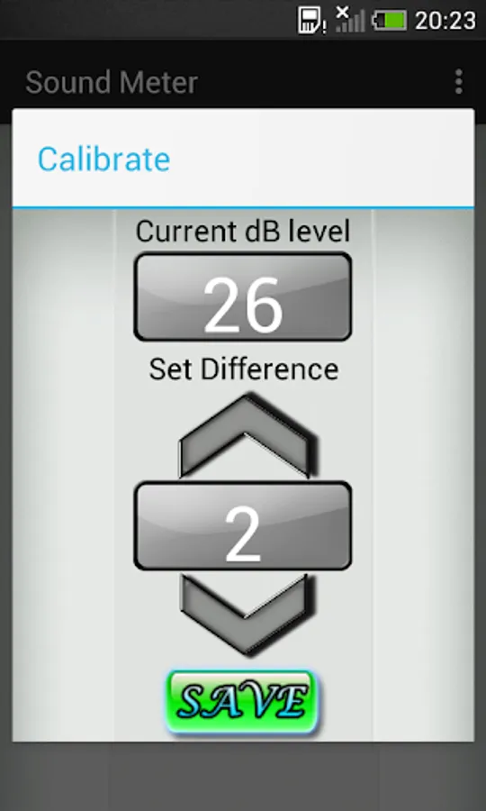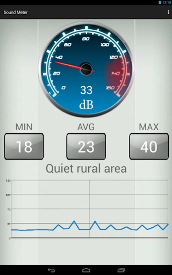 Since your devices is not a professional sound meter a calibration may be needed for some devices. Click the "Calibrate" option in the options menu and change the value to get best results, then click the "save" button.