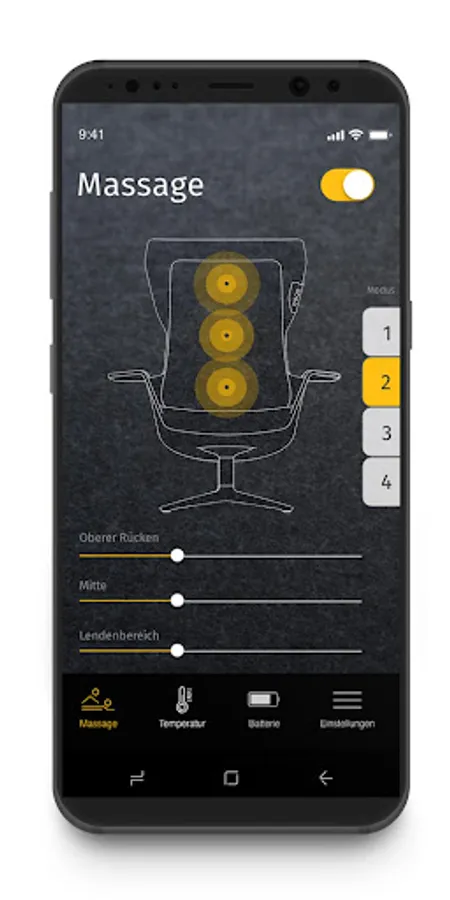 With four functions for the upper back, the loin area and the back center. Intensity separately and infinitely adjustable.