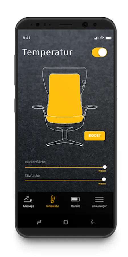 The infinitely adjustable heating function can be regulated separately for seat and back. It is particularly fast with the "fast heating" function.