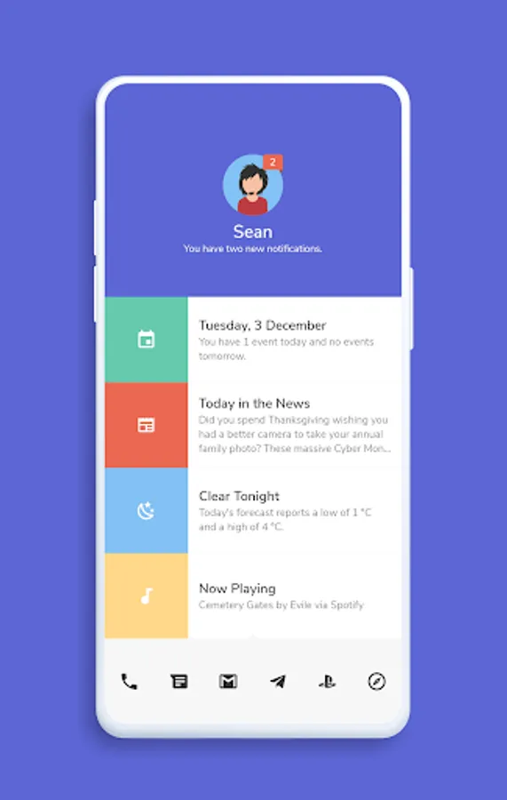 Stunning one page setup for Kustom Live Wallpaper. Silky smooth gliding animations that slide away the informative panels to reveal your Calendar, Weather, News and Media - in style. Watch the video to see the full glory. Resizes to fit all phones. Dark mode ready* :)