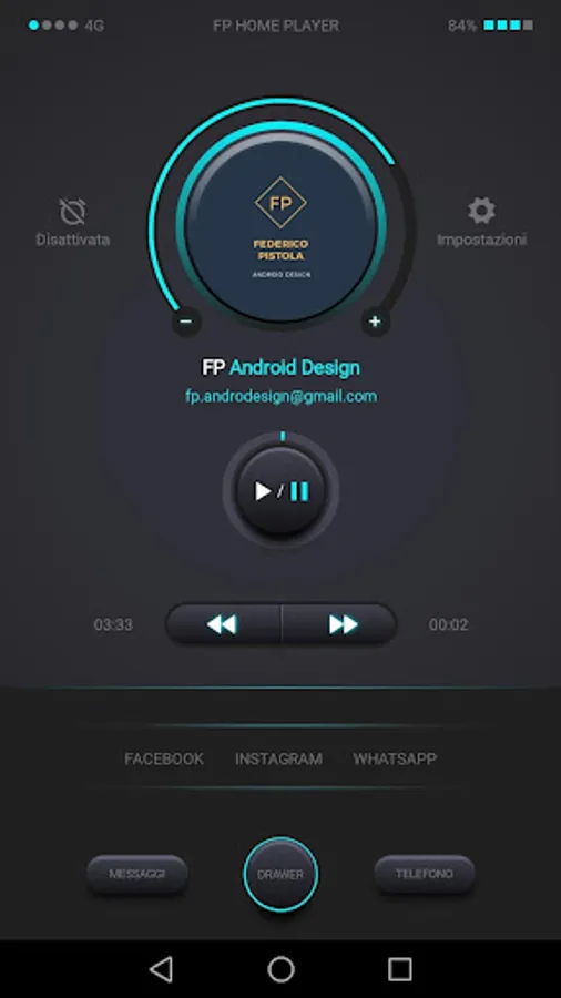 Clean and easy to use interface, where you can access your favorite Apps, listen to your favorite playlist thanks to a nice player integrated in the interface.