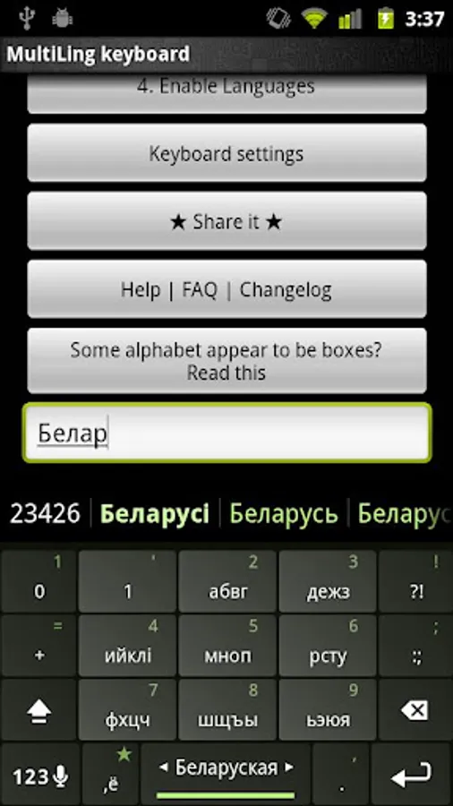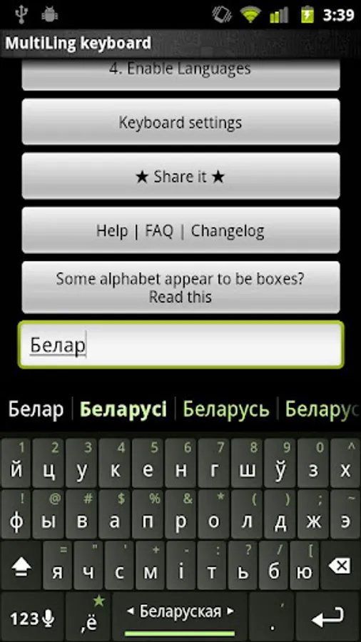 беларуская мова | Belarusian plugin for MultiLing Keyboard.