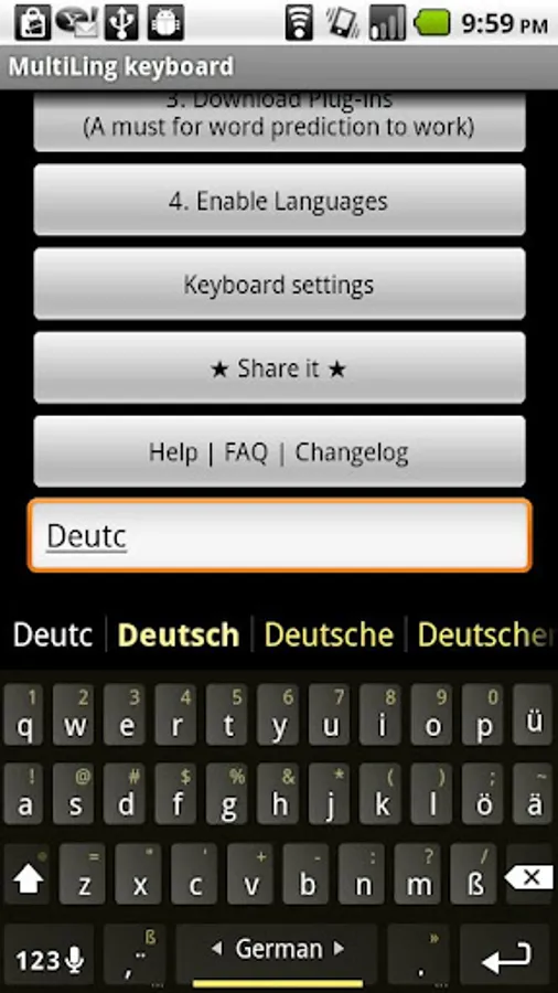 German plugin for Multiling O Keyboard. This is not an independent app, please install OKeyboard along with this plugin.