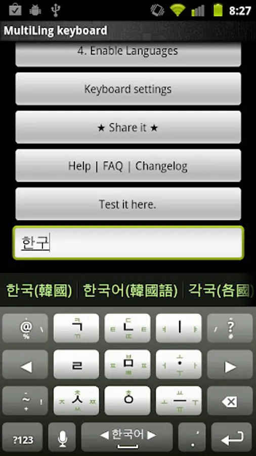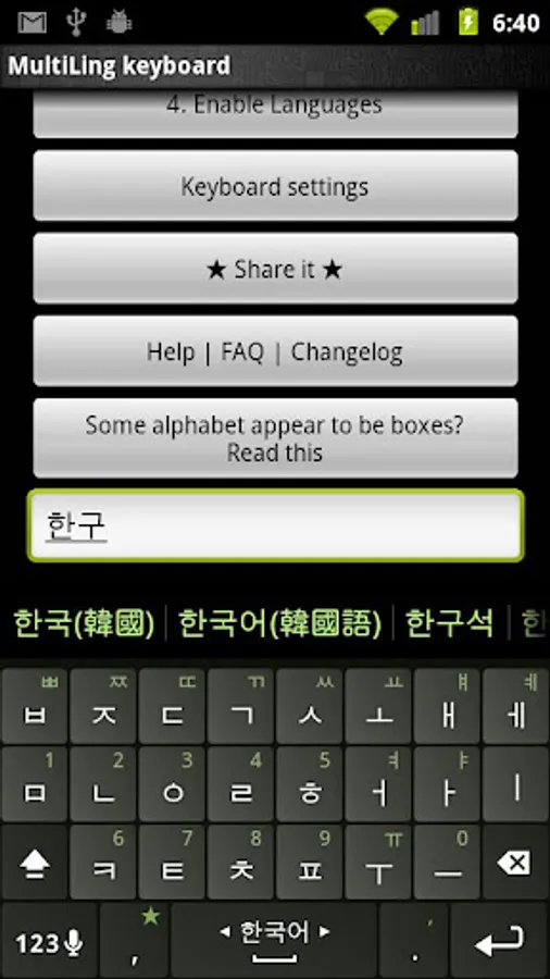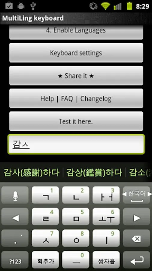Korean Hangul Hanja for Multiling O Keyboard. This is not an independent app, please install OKeyboard along with this plugin.