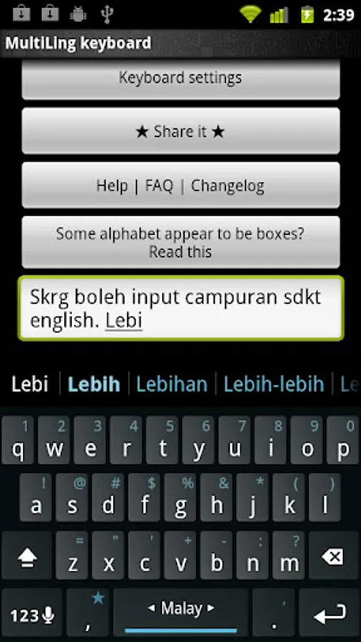 ⑴ Install this plugin and Multiling O Keyboard. https://play.google.com/store/apps/details?id=kl.ime.oh