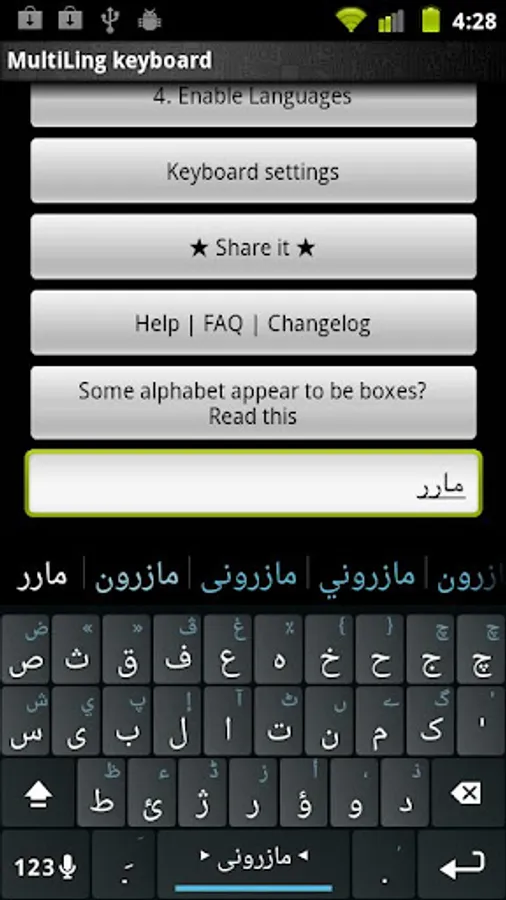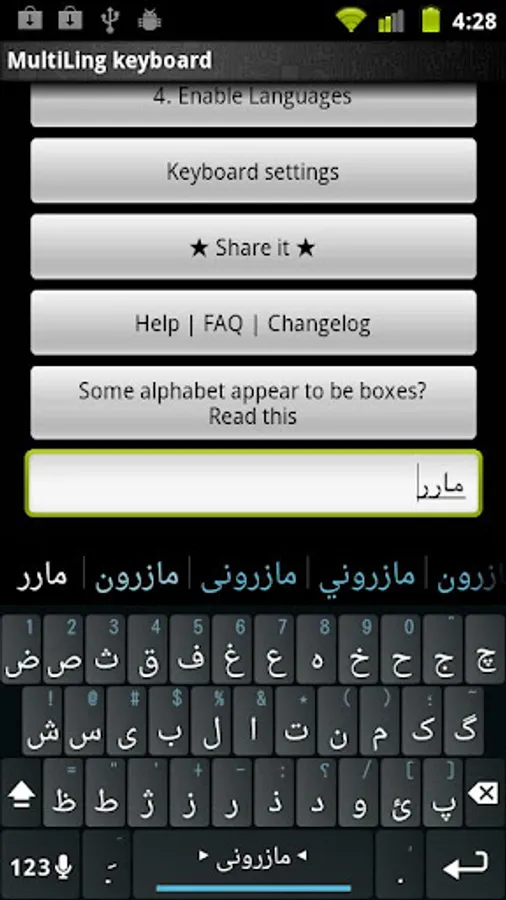 Mazandarani (مازِرونی) or Tabari (تبری) Dictionary plugin for Multiling O Keyboard autocorrect and word prediction
