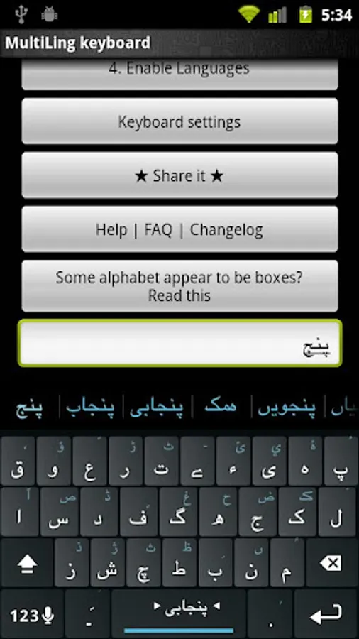 پنجابی Dictionary plugin for Multiling O Keyboard autocorrect and word prediction