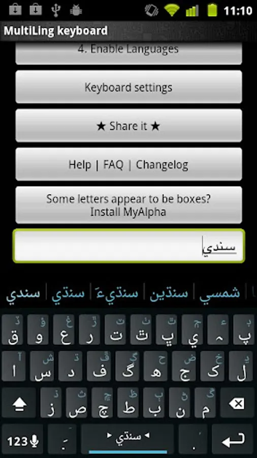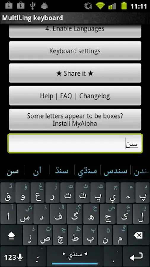 Sindhi Dictionary plugin for Multiling O Keyboard autocorrect and word prediction