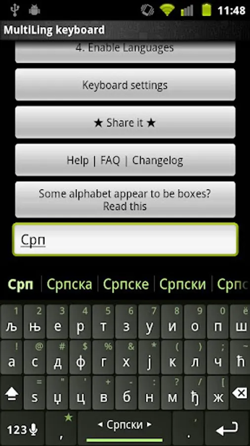 ⑴ Install this plugin and Multiling O Keyboard. https://play.google.com/store/apps/details?id=kl.ime.oh