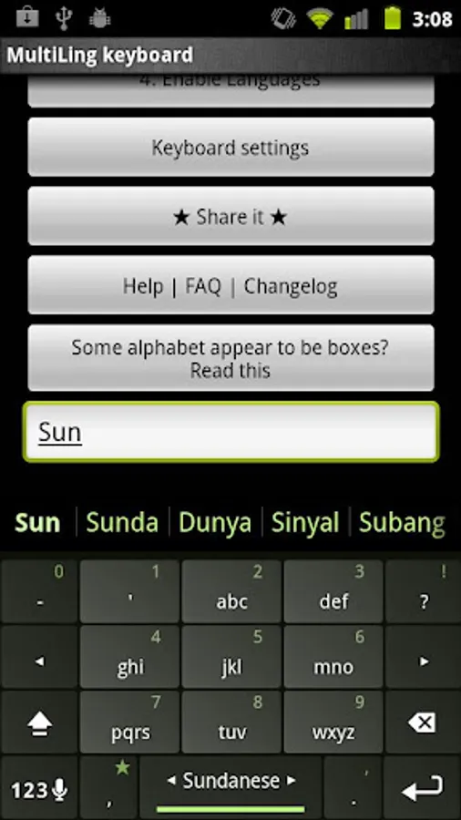 Sundanese Dictionary plugin for Multiling O Keyboard autocorrect and word prediction