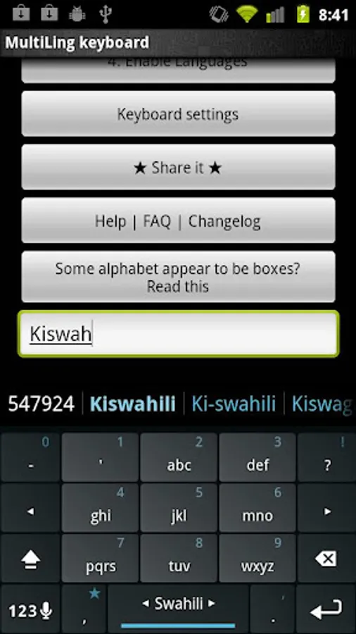 Swahili Dictionary plugin for Multiling O Keyboard autocorrect and word prediction