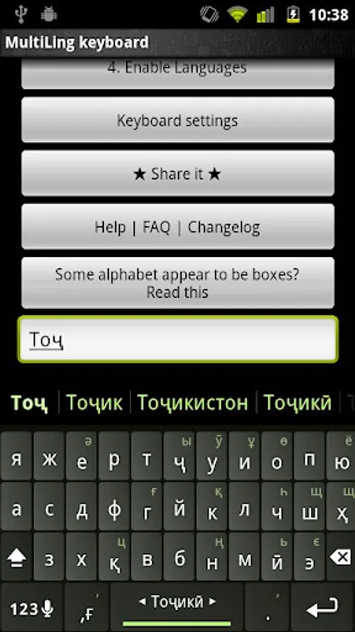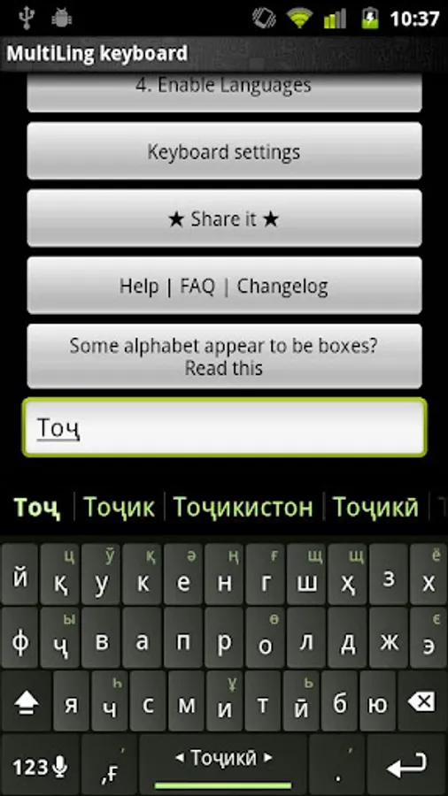 Tajik Dictionary plugin for Multiling O Keyboard autocorrect and word prediction
