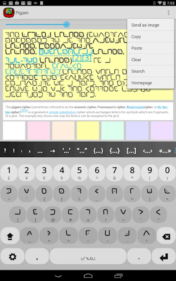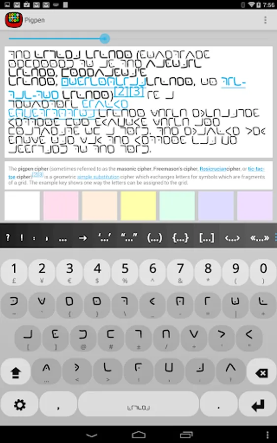 pigpen cipher font plugin for Multiling O Keyboard. This is not an independent app, please install OKeyboard along with this plugin.