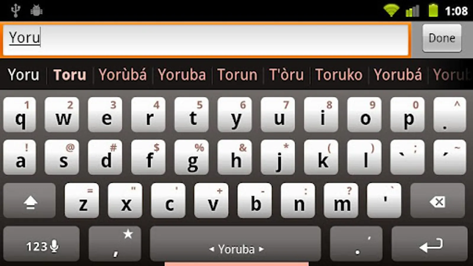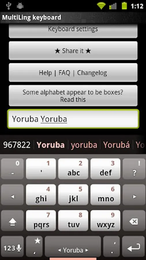 Yoruba dictionary for MultiLing Keyboard. Please install MultiLing Keyboard along with this plugin.