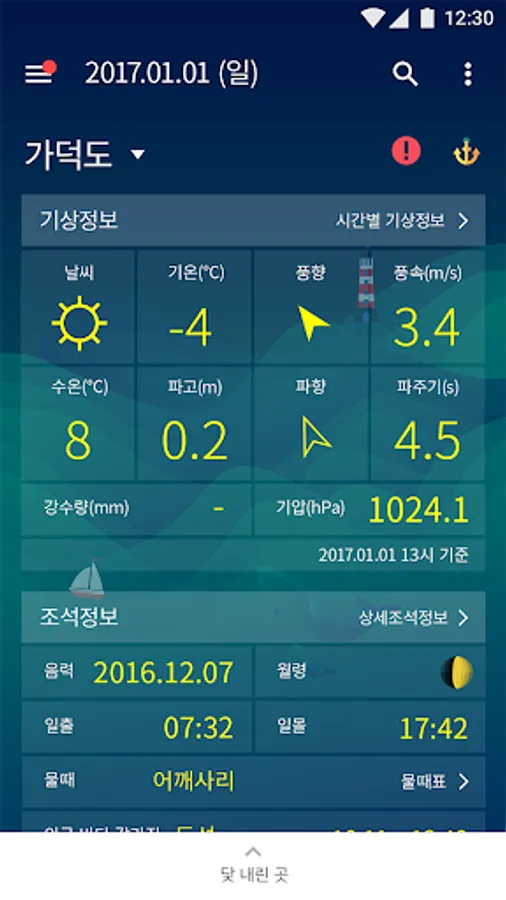Yeowoobi sea the weather view information for numerical prediction models based on complex weather forecasting engine equipped with a scale, digging / pahyang, temperature, wind direction / wind speed, such as boat enthusiasts, marine leisure activities, including fishing enthusiasts who are proud of Korea Marine Meteorology technology easily ssokssok Collect show at a glance!