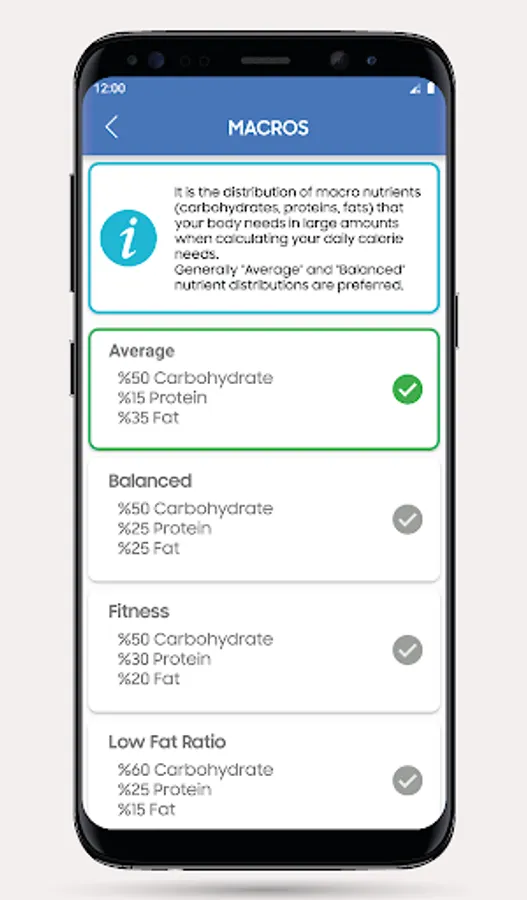 Other nutrition plans: average, balanced, fitness, low fat, keto (ketogenic), low carbohydrate rate, bodybuilding,
