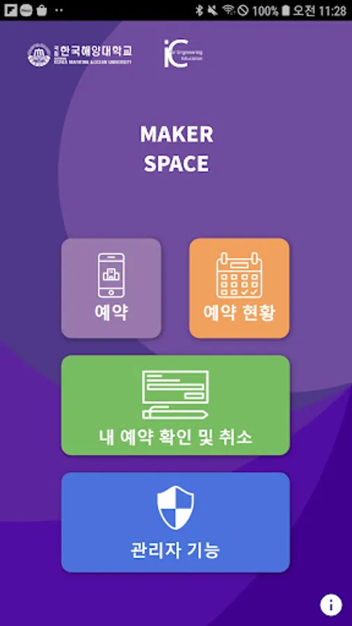 This is a makerspace reservation program operated by the Engineering Education Innovation Center of Korea Maritime University. It is quick and easy to use by making reservations available to students using the Makerspace in real time.