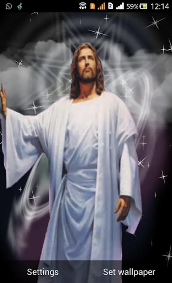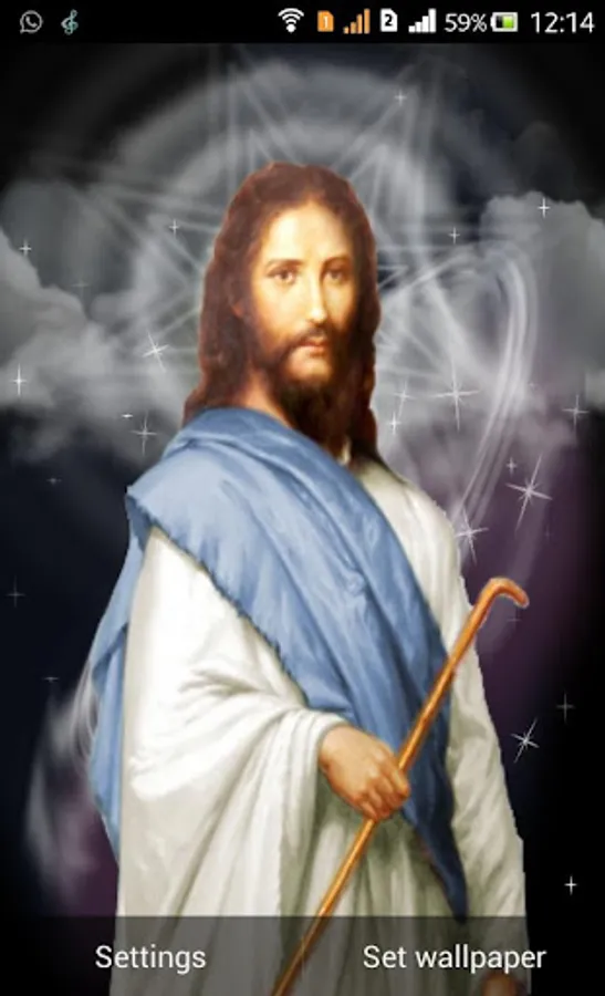 Jesus Live Wallpapers with amazing background effects with stars and clouds.