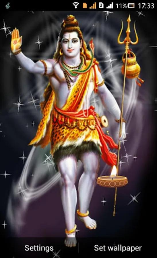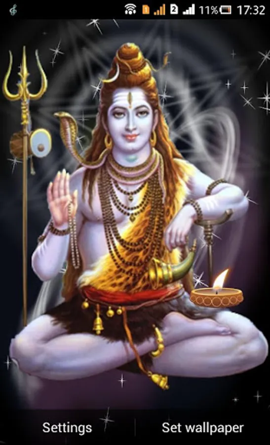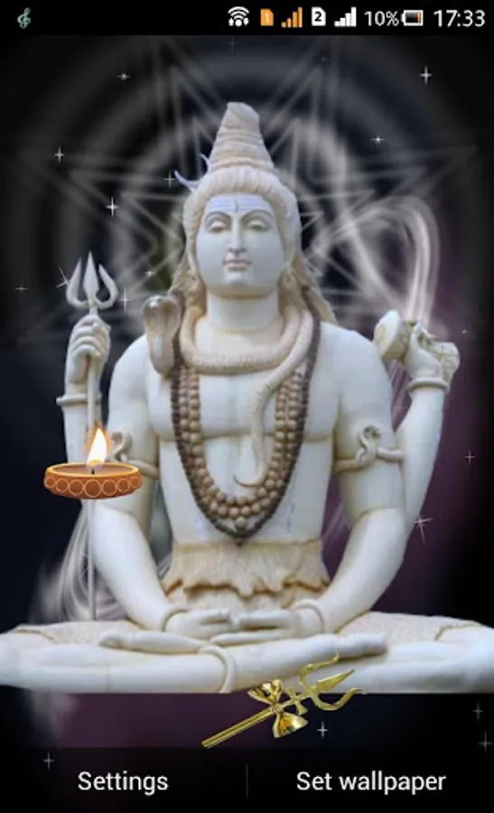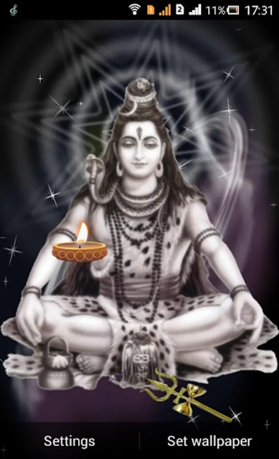 Lord Shiva Live Wallpapers with amazing background effects with stars,Diya and Trishul.