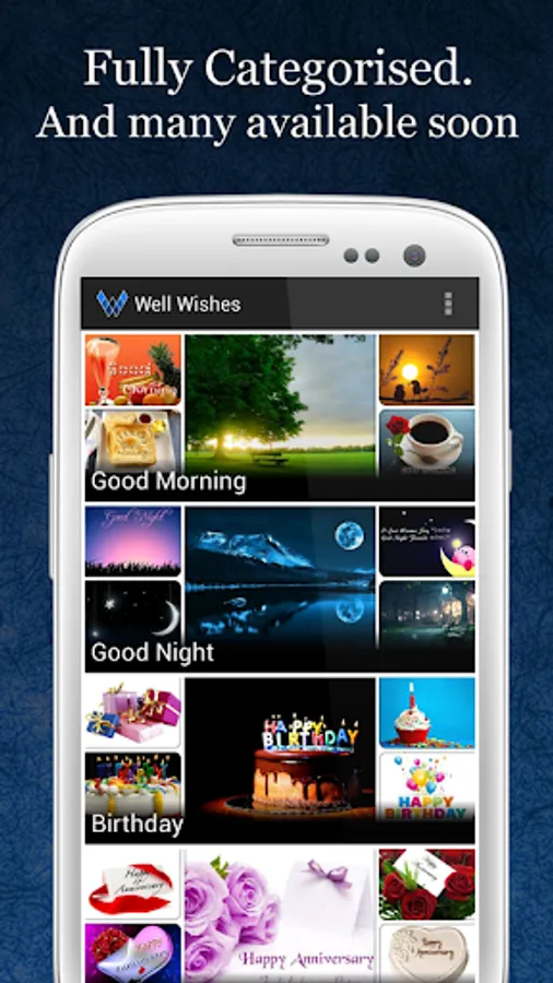 This single app contains many greetings images in different categories like Good Morning, Good Night, Anniversary, Birthday, Congratulations, Thank you and many Festivals.